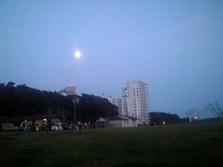 2日〈月〉夕方,東の空に満月が見えました。明日いい天気になってくれるのかな?