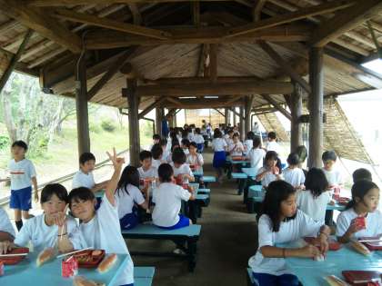 3日〈火〉朝食が始まりました。子どもたちはみんな元気で,朝からモリモリ食べています。