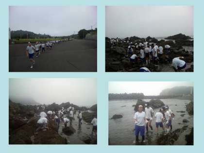 3日〈火〉朝食を食べてから宮崎浜へ磯観察に出かけました。宮崎浜では,タコ・イソギンチャク・ヤドカリ・小魚などを見つけました。
