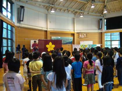 4日〈水〉7時から朝の集いを行いました。朝からきれいな声で校歌を歌うことができました。