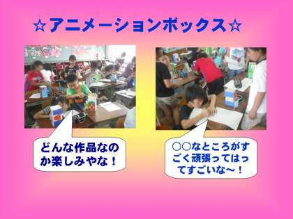 今日,図工のアニメーションBOXをみんなで評価しました!たくさん時間を使って頑張っていました。たくさん誉めあってお互いを認めあう様子がたくさん見れました。かっこいい5年生がたくさんいました☆
