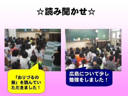 「おりづるの旅」という題名でした。内容は,広島の原爆が投下された後の後遺症が残って12歳の女の子が亡くなったお話しでした。
