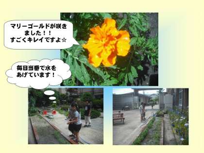 栽培委員会で育てている花が咲きました!マリーゴールドという花の名前です!