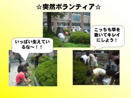 火曜日にボランティア委員会から突然ボランティアがありました!中庭の草抜き隊の募集でした!突然の呼びかけにたくさんの子ども達が集まってくれました!