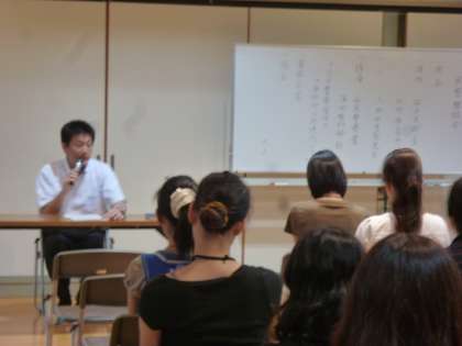 西京警察署生活安全課の警部補にお越しいただき,『西京警察署管内の少年非行の状況について』お話を聞きました。青少年を取り巻くさまざまな有害環境や,低年齢化している安易な犯罪傾向などについてお話いただきました。その後,質疑応答が行われ,活発な議論がなされました。