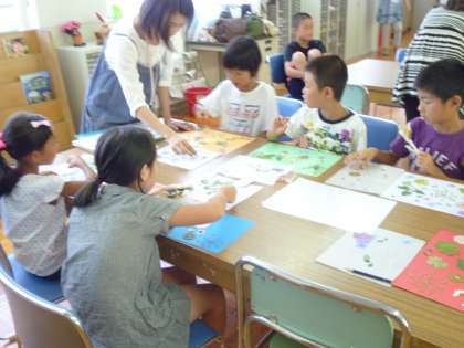 8月8日(水)放課後まなび教室で『ランチョンマットづくり』をしました。押し花をならべてそれをラミネートしてランチョンマットを作りました。