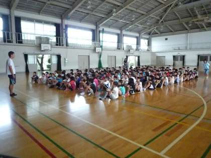 組体操の練習が始まりました。134人がひとつの動きを合わせることの難しさを子どもたちは感じたことと思います。また,個人技も説明しました。学校ではほとんど練習しないので,お家で練習してほしいと思います。毎日のストレッチもしてほしいです。
