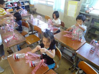 今日の午後,ヒスヒスカルカルのペットボトルに装飾をしました。本番モードにも