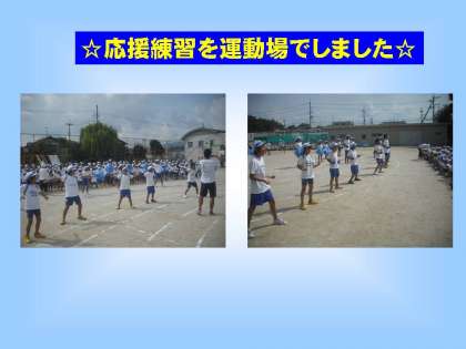 今日は,運動場で運動会の全校練習をしました!最初の入場から練習し,一通りの流れを確認しました!その後,各色の副団長が色目標をみんなの前で発表してくれました。また,スローガンも発表されました☆