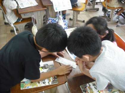 今日は買い物調べということで,レシートを見ながらみんなで話し合いました。