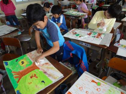 図工では,お話の絵に取り組んでいます。