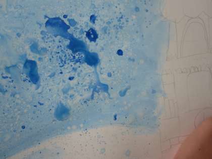 絵の具の液がぼたぼたと落ちて,乾くとふくらみ想像以上の表現になりました!ステキ!