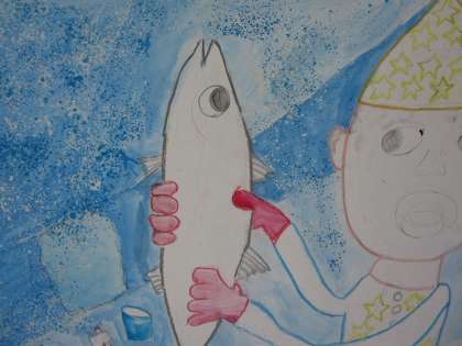 ロシアのお話「なまけもののエメーリャ」を絵に描きました。