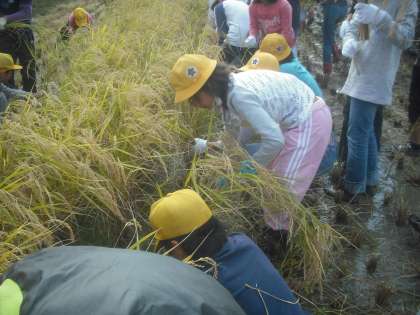 今日は,5年生が稲刈りをしました!早い時期から育てていたお米を収穫しました!