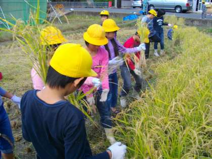 今日,稲刈りをしました!田植えをしてから数ヶ月経って,立派な稲穂に育ちました。雨の日も風の強い日も毎日,田の手入れをしてくださったり,見守ってくださったりされた方々に感謝の気持ちでいっぱいです。子どもたちが,自分で田植えをした分,収穫の喜びはひとしおだったようです。収穫したお米で今後,調理しようかなと考えているところです。