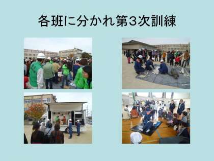 その後,現場班・救護班・避難所運営班などに分かれて3次訓練を行いました。
