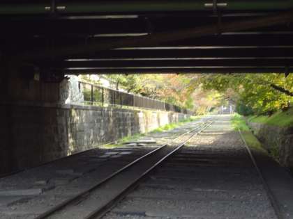 蹴上インクラインの線路の上を歩いたよ!