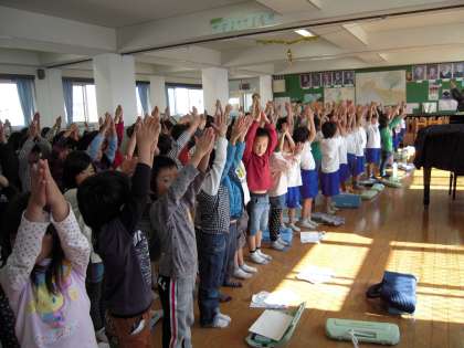 今日から本格的に音楽フェスティバルの練習が始まりました。1時間目は体育館で並び方の練習をしました。3時間目は音楽ホールで「まほうのおまじない」の歌の練習をしました。なかなかおまじないがうまく言えないのですが,振りも付けて,元気よく歌えるように練習しました。フェスティバルに向けてがんばります。