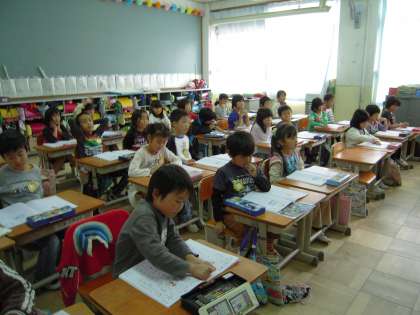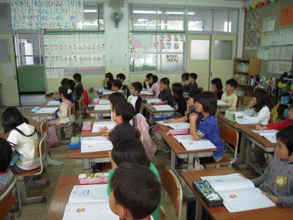 ひらがなをマスターして,9月から漢字の学習が始まっています。今日は「青」という字を学習しました。漢字を使った言葉作りや文作りでは,みんな進んで発表しています。「月とは,はらいやとめがちがう。」「1画目と2画目はおんなじ長さ。」と細かいところまで注意して練習しました。