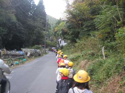 坂道に疲れ始めて,「おなかがすいた〜!」「いつまで登るの〜。」