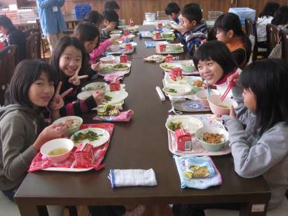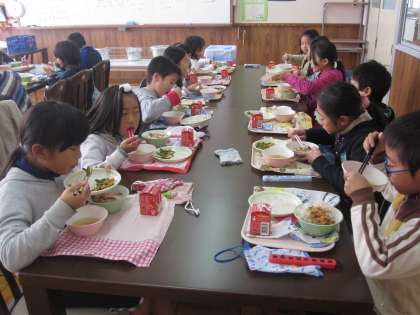 その後は,ランチルームで給食です。