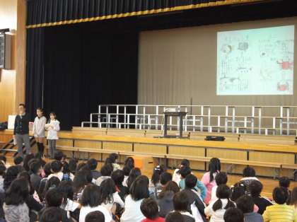 今日の朝会で自主学習についてのお話がありました!各学年のお友達がどのような自主学習を行ってきたのか,どんな工夫をしているのかを発表しました!ノートが映し出されると「丁寧やなぁ〜」「真似しよう」という声がたくさん聞こえました。自主学習は,『自分の為にするもの』です。興味のあるもの,学習に必要と感じるもの,どんな内容のものでもいいのです。自分が学びたいと感じたものをこれからもどんどん調べ,残し,これからの自分の力にしていって欲しいと思います!