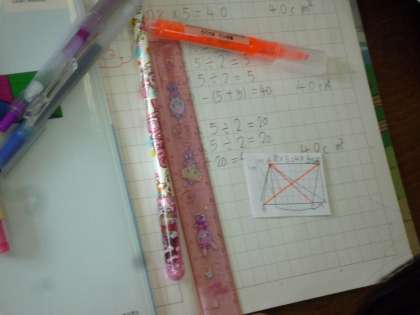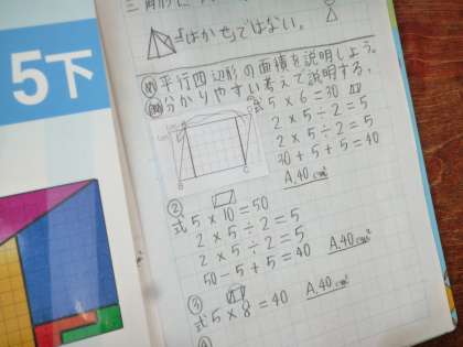 ↑平行四辺形の面積の求め方をいろいろな方法で挑戦しています。