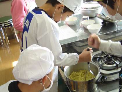 松陽小学校と樫原中学校と樫原小学校の三校が集まって交流会をしました。今年度2回目の今日は、松陽小学校に集まって、出し物やゲーム、そしてスイートポテト作りをしました。中学生のお兄さんやお姉さんが優しくリードしてくれて、みんな仲よくなりました。