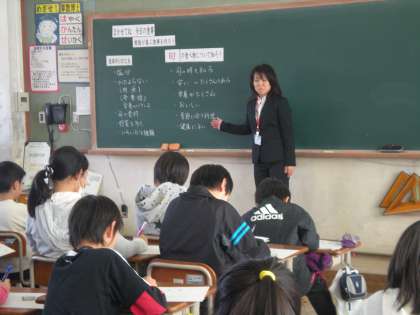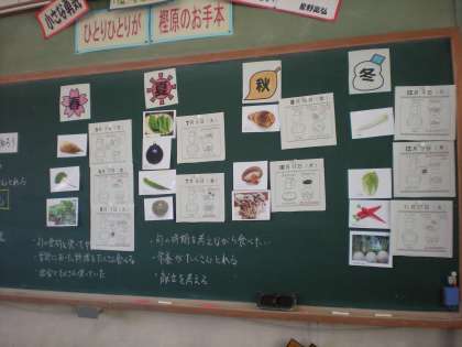 6年生の家庭科では,栄養のバランスのよい食事や,さらに健康的で,家族が喜ぶ食事作りについて学習しています。いつも食事を作ってくれている人へのインタビューでは,いろいろなことに気をつけてくれていることに気が付きました。家庭での工夫でも旬の食材を使うという意見も多く,給食でも旬の食材をたくさん使用しています。なぜ旬の食材を使うのか,またそれぞれの食べ物の旬の時期を知る勉強をしました。ご家庭で旬の食べ物を使った時にはアピールしてください。