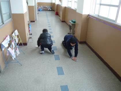 給食のこぼれた廊下を