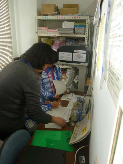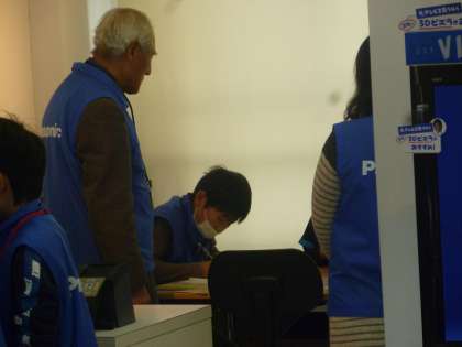 販売をしている後ろで,お給料の紙や銀行に提出する紙を書いています!