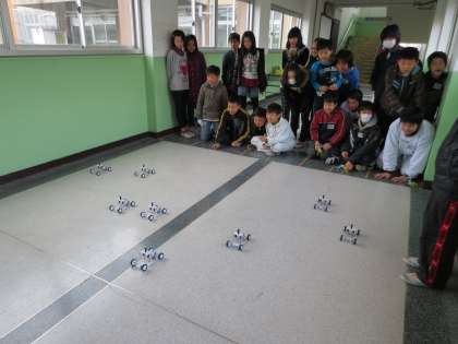 一番線に近かった車の勝ちです。でも越えたり他の車に当たると失格です。