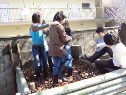 ボランティアを募って,たい肥づくりをしました。