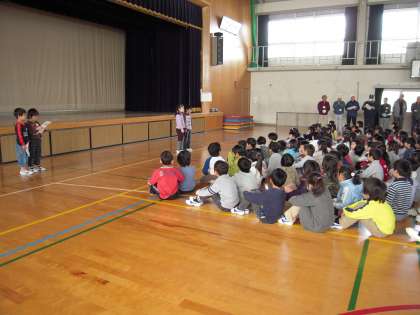 14日に,たくさんの地域の方にゲストティーチャーとして来ていただき,「むかしあそびにチャレンジ」をしました。子ども達は早く遊びたくて,朝からワクワクして待っていました。はじめの会では,地域の方やみんなの前で司会をしたり,はじめの言葉を言ったりしました。教室と同じように元気よく司会ができました。