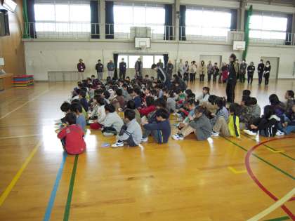 4種類のむかしあそびを楽しんだ後,最後におわりの会をしました。地域の方のお話を聞いて,終わりの言葉を言いました。最後にみんなで,お礼を言いました。寒い中,長時間にわたり子ども達にむかしあそびを教えていただき,ありがとうございました。「今日はとっても楽しかった。」「できなかったあそびもやりたかった。」「けん玉ができてうれしかった。」と子ども達も大満足でした。