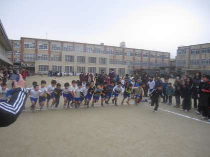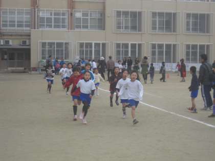 今日は,朝から少年補導のマラソン大会が開かれました。1年生から6年生まで,たくさんの児童が参加しました。今,体育の時間に走っていることもあり,みんな最後まで走りきることができました。走り終わった後の,豚汁はさぞおいしかったことでしょう。