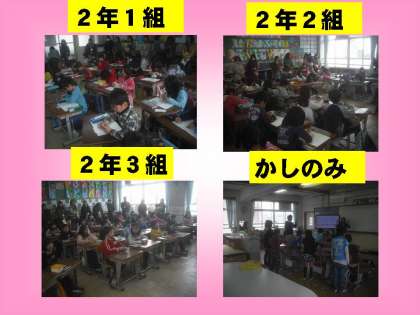 2月19日(火)に かしのみ学級,2年生,5年生,6年生の参観懇談がありました。各,学級最後の参観日でした。たくさんのご両親が見にこられており,子ども達は嬉しそうでした♪