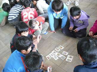 今週は、4年生の各クラスと1時間ずつ一緒に活動する、交流週間です。運動場でおにごっこやボールあそび、じゃんけんゲームを楽しんだり、教室でかるたやトランプ、ぼうずめくりをしたり・・・・たくさんの友だちと仲よく活動しています。