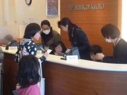ピリオドの始まりごとに,銀行にたくさんの人が来ていました。