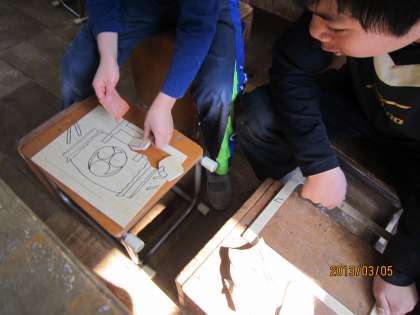 板に好きな絵をかいて,糸のこぎりでピースに分けました。初めて糸のこぎりや電動のこぎりを使いましたが,みんな安全に気を付けて真剣に切っていました。2時間で全員がけがもなく,片づけもちゃんとして100点満点の学習になりました。