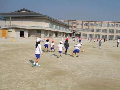 先週からサッカーをしています。初めは,ちょっと不安を抱いていた子どもたちも慣れてきて,だんだん楽しくなってきたと感想に書くようになってきました。スポンジボールですので,みんな怖くなく,ボールを取ろうと必死です。空振りも多いですが,うまく当たって,シュート成功ということもあり,楽しんでやっています。