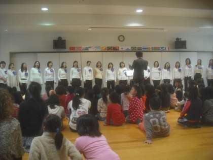 指揮者体験というのがあり,子どもがお母さん達の指揮者をしていました☆すごく上手でしたよ♪オークナッツの皆様の歌声も非常にキレイで子どもたちが聴きいってました☆