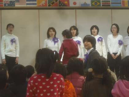 3月6日のお昼休みにPTAの「オークナッツ」の皆様がコンサートをしてくださいました!