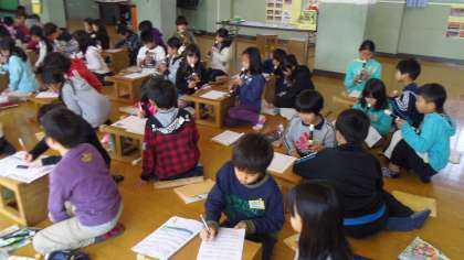 なかよし学年の3・4年生でリコーダーの練習をしました。