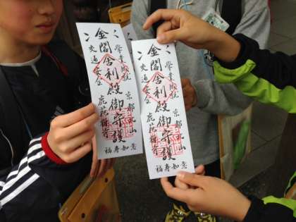 3月8日(金)6年生は,京都歴史めぐりをしました。鹿苑寺(金閣寺)を訪問したグループもありました。お札を購入し,購入したお札をみせると,入場することができます。