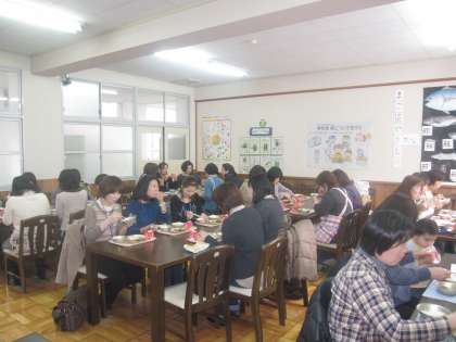 給食試食会では,1年生の給食の様子をご覧になり,その後給食を食べていただきました。「なつかしい」「すごくおいしい」「栄養がよく考えられている」「子どもがうらやましい」「あたたかいのが食べられるのがいい」などの感想を寄せていただきました。