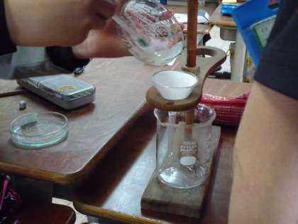 今日はミョウバンと食塩の水溶液をろ過しました。