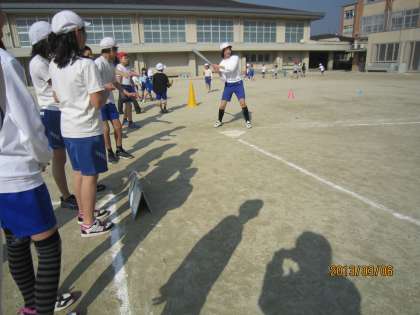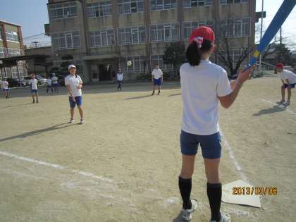 体育のベースボール,最終日です。はじめての子もルールがわかって「走れ〜!」と応援しています。どのチームも協力してがんばれました。