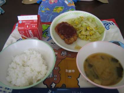 今日は,6年生の卒業をお祝いしてトンカツを作りました。朝から,小麦粉・たまご・パン粉をつけて油で揚げました。全部で800枚です。トマトケチャップ・トマトピューレ・砂糖・ウスターソース・洋からしで作ったソースをかけて食べます。みんなとってもおいしそうに食べていました。