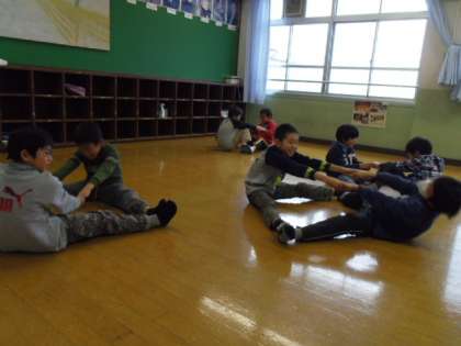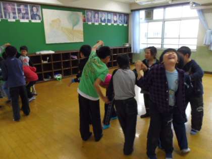最後の音楽の授業では,さまざまな「わらべうた」を歌って体を動かしました。